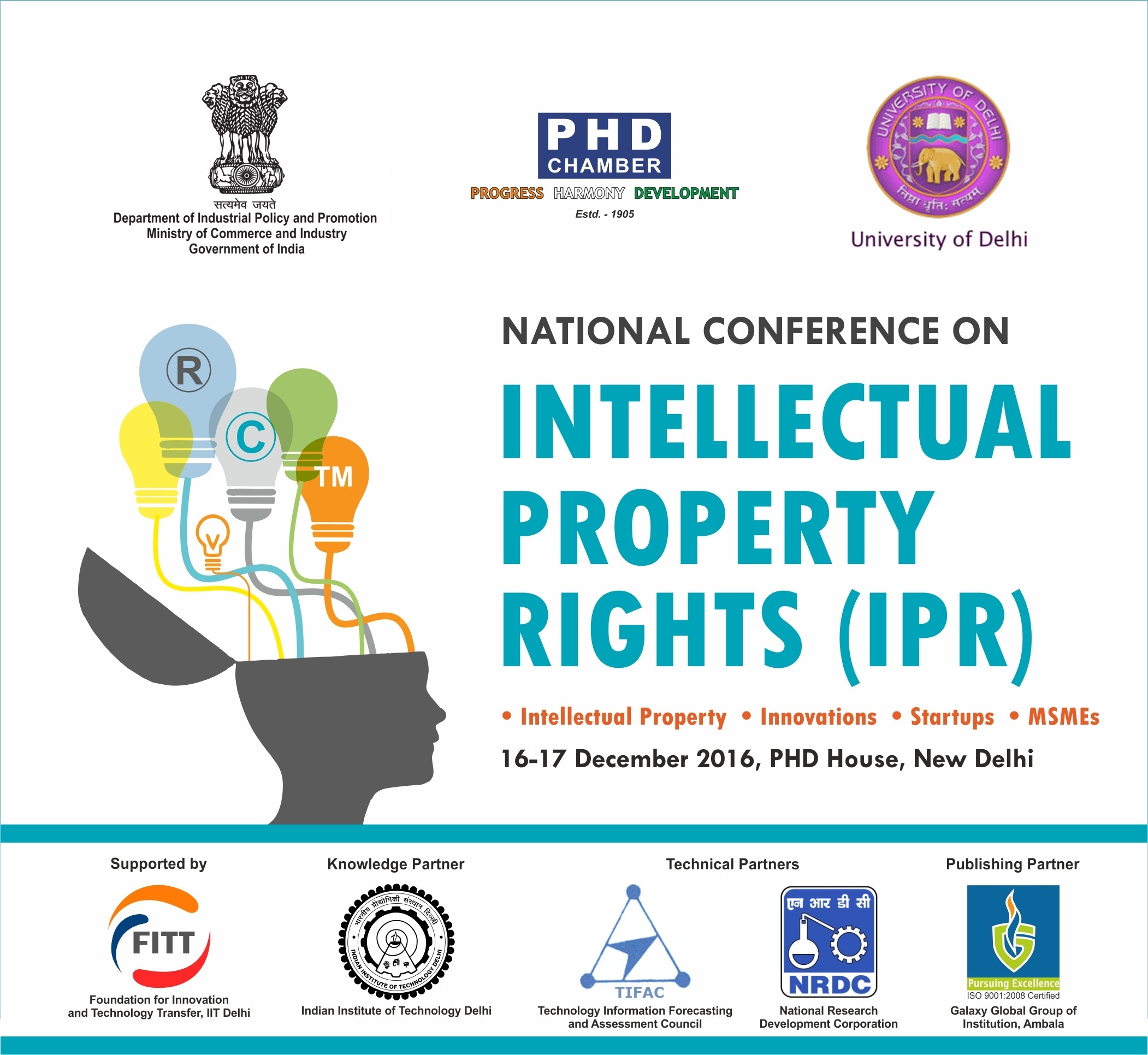 We are happy to announce that PHD Chamber in collaboration with University of Delhi (under the aegis of IPR Chair), is organizing a two day National Conference on Intellectual Property Rights (IPR) on December 16 & 17, 2016 at PHD House in New Delhi.